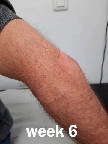 William alitumia gel ya tiba ya kitaalamu BeeVenom™ New Zealand Bee Venom kwa kipindi cha wiki sita na kuponya kwa mafanikio bursitis ya kiwiko.
