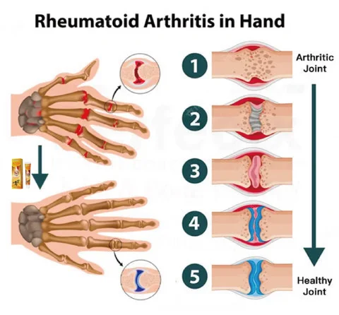 Ugonjwa huu unaweza kugawanywa katika aina nyingi. Dalili za kawaida ni pamoja na kuungua na kuwa joto, kuvimba, maumivu, kushindwa kufanya kazi za kawaida za viungo, na mabadiliko ya umbo la viungo, ambayo yote yanaweza kusababisha uharibifu wa viungo na kuathiri ubora wa maisha ya mgonjwa.