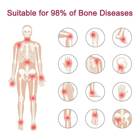 Inaweza kupunguza maumivu na kutibu osteoarthritis, polyarthritis rheumatoid, bursitis, tendinitis, osteoporosis, gout, sindromu ya mfereji wa mkono (carpal tunnel syndrome), kujeruhi misuli na viungo (sprains na strains), uvimbe wa tishu (tumors), maumivu ya kiwiko yanayotokana na mchezo wa tenisi (tennis elbow), na uvimbe wa cyst.