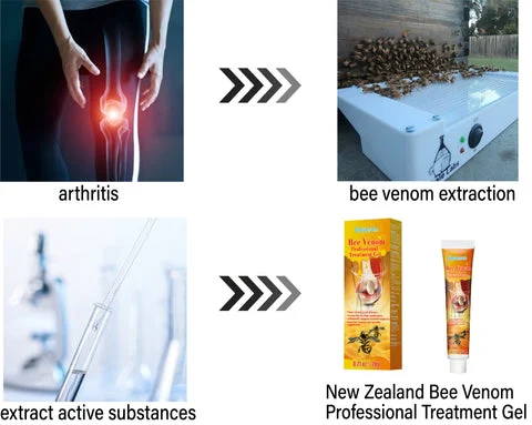 Sumu ya nyuki ni dutu ya asili yenye protini inayoitwa melittin, ambayo hupunguza maumivu na uvimbe wa arthritis kwa ufanisi. Pia ina viambato vingine kama vile enzimu, asidi za amino, vitamini, na mafuta vinavyosaidia kurejesha tishu za viungo na kuboresha unyumbufu pamoja na uhamaji wa viungo. Kinase na phospholipase A2 huchochea mtiririko wa damu na kuongeza lishe ya tishu, hivyo kusaidia kuimarisha viungo. Mchanganyiko wa sumu hupunguza mmenyuko wa uvimbe, kupunguza maumivu, na kuboresha uhamaji wa viungo. Zaidi ya hayo, sumu hii ina mali za kuua bakteria, kuzuia uvimbe wa saratani, inalinda moyo na mishipa ya damu, huongeza uzuri wa ngozi, na hupunguza mchakato wa kuzeeka.