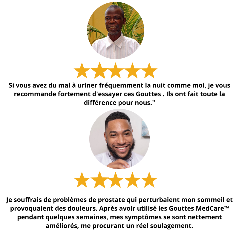 la miction nocturne fréquente est un symptôme courant chez les personnes ayant des problèmes de prostate. Les Gouttes  de traitement de la prostate MedCare™ ciblent spécifiquement les muscles lisses et les tissus entourant la prostate et la vessie. Grâce à leur action, ces Gouttes  détendent et renforcent ces structures, entraînant un meilleur contrôle de la vessie, une réduction de l’urgence urinaire et un flux urinaire plus sain. Cela se traduit finalement par moins d’allers-retours nocturnes aux toilettes.